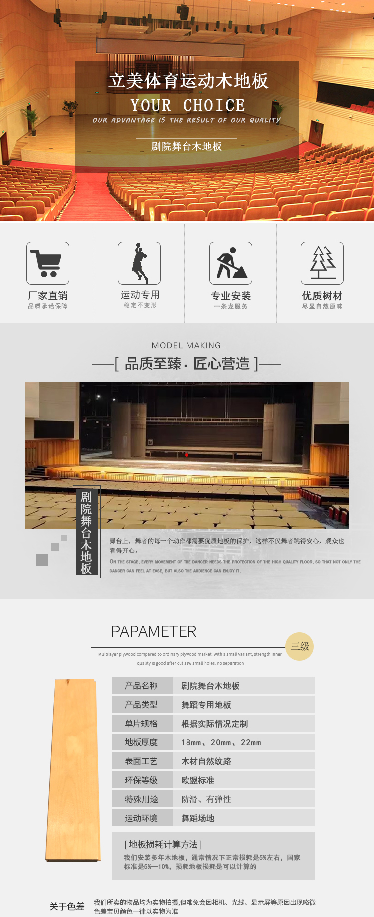 地板的独特功能设计,最大限度的避免演员因过多的能量消耗而产生疲劳,影响演出效