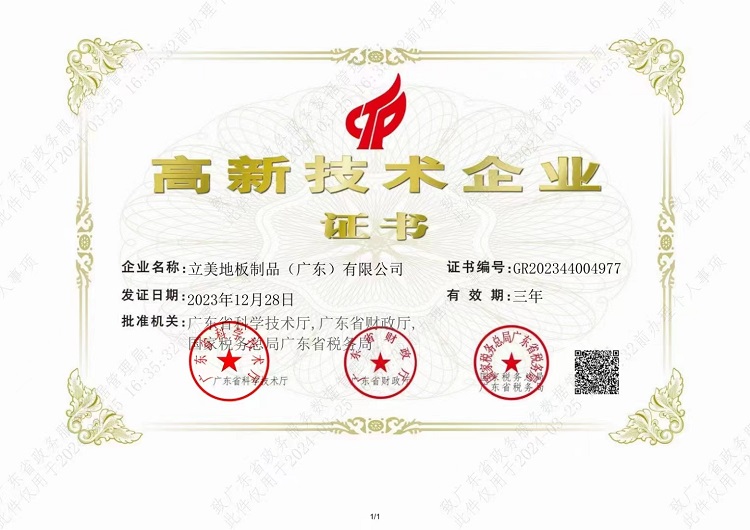 昨天下午在莞城经发局副局长庾贵贤的率领下,东莞市高新技术产业协会秘书长郭志刚及高企协会王文康等领导,一起前来咱们立美地板公司授发高企证书。该证书由广东省科学技术厅、广东省财政厅、税务总局广东省税务局联合颁发的,这是对企业自主创新能力的褒奖,更助推企业科技赋能的步伐。“高新技术企业”称号作为中国科技企业zui具权威荣誉之一,是对企业在核心自主知识产权、科技成果转化能力、研究开发的组织管理水平、成长性指标和人才结构的综合评估和高度认可。