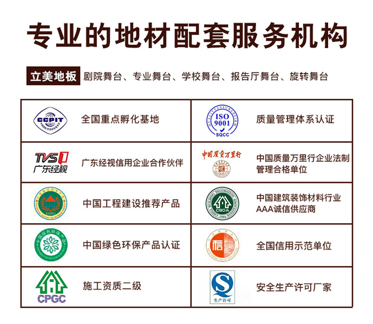 立美舞台运动木地板具有较强的吸震性能,能够有效地消除演员在跑动、跳跃时产生的冲击力,从而保护人体的韧带、关节、脊椎和大脑,减少演员跌倒时可能受到的伤害。