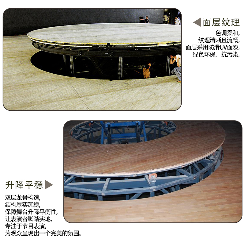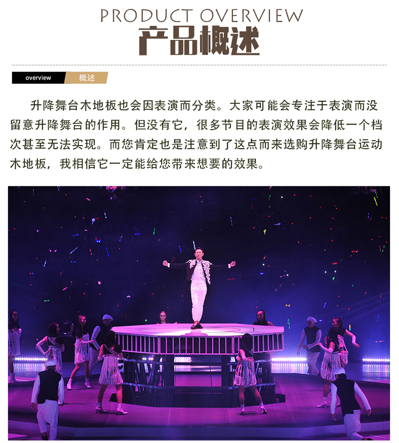 说起升降舞台运动木地板大家可能有点陌生,它是个什么东西呢?难道会因为表演的舞台而有各种分类吗?没错,的确有这么一个分类。可能大家专注于电视里精彩的表演,而没有刻意注意升降舞台木地板的起到了什么作用,但没有它,很多节目的表演效果会降低一个档次甚至无法实现。而您肯定也是注意到了这点而来选购升降舞台运动木地板,我相信它一定能给您带来想要的效果。