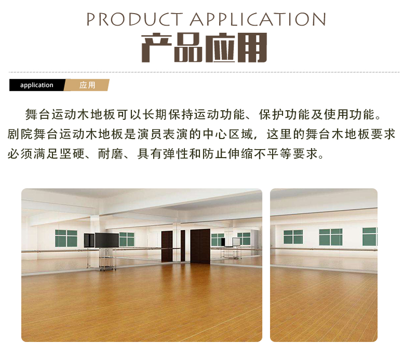 舞台运动木地板可以长期保持运动功能、保护功能及使用功能。 剧院舞台运动木地板是演员表演的中心区域,这里的舞台木地板要求必须满足坚硬、耐磨、具有弹性和防止伸缩不平等要求。