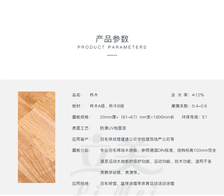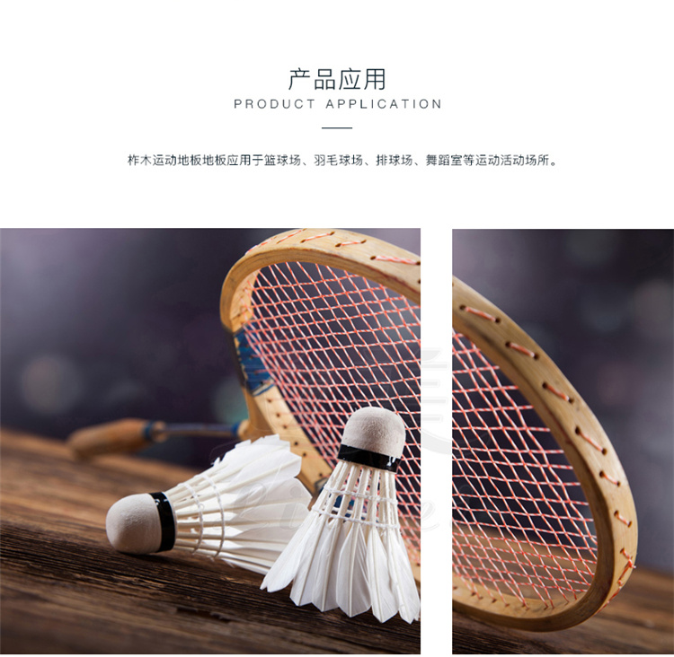 羽毛球馆运动木地板是采用缓冲层设计,能够提供极好的运动缓冲保护作用,从而大限度的去减少运动员的运动伤害地板也可以大量的吸收冲击力,做到充分的保护运动者的踝关节、膝关节的机能,同时,羽毛球运动木地板还拥有稳定的回弹性能,在运动员跳跃落地的过程中,产生的震动不会对相邻人员造成运动影响产品应用: